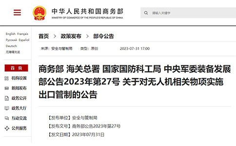 2023年7月31日,四部門聯(lián)合發(fā)布了關(guān)于無人機(jī)的兩個(gè)公告,分別對(duì)部分無人機(jī)專用的發(fā)動(dòng)機(jī)、無線電通信設(shè)備以及重要搭載,還有民用反無人機(jī)系統(tǒng)等實(shí)施出口管制。對(duì)于消費(fèi)級(jí)的...
